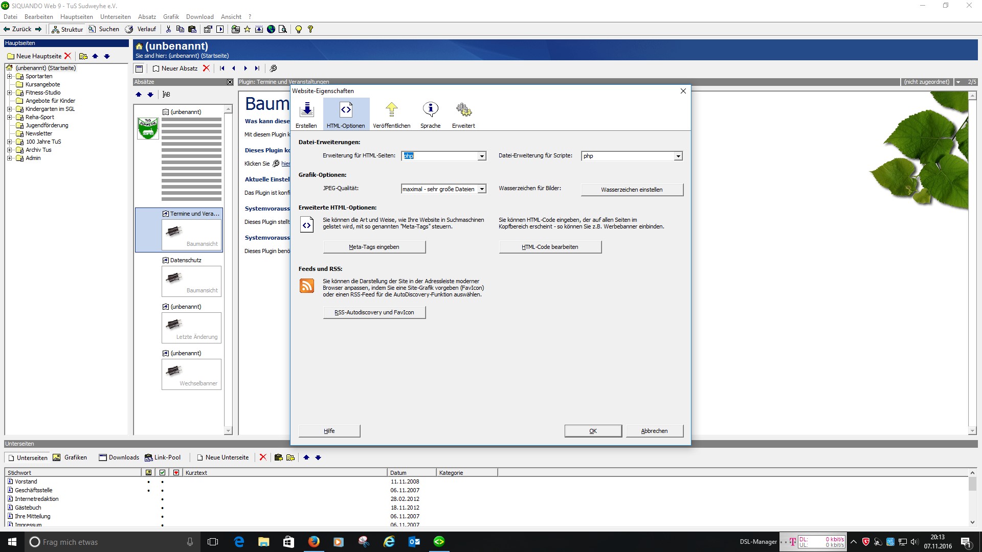 Das Ändern des Namens von index.php zu index.html führt dazu, daß die PHP-erfordernden Features/Plugins nicht mehr funktionieren. Daß es hiervon auf Deiner Website welche gibt, beweist die Tatsache, daß Siquando Web selbständig die Endung .php vergeben hat.