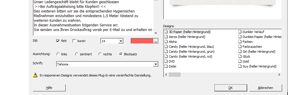 Als design verwende ich New York dies ist Reponsiv und eigentlich bin ich zufrieden