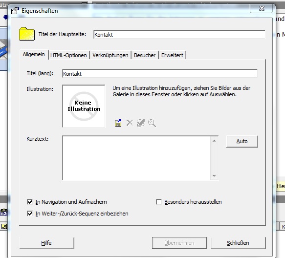 Weiß jemand von Euch, wie ich das "index.html" weg bekomme? Ich hatte eben in einem anderen Beitrag schon den Tipp bekommen, die Eigenschaften auf der Absatzseite entsprechend zu bearbeiten, so dass ich den Titel der Hauptseite einfach umbenenne bzw. hier einen Namen vergebe. Dies habe ich auch bereits gemacht, aber an dem Problem hat sich nichts geändert.
