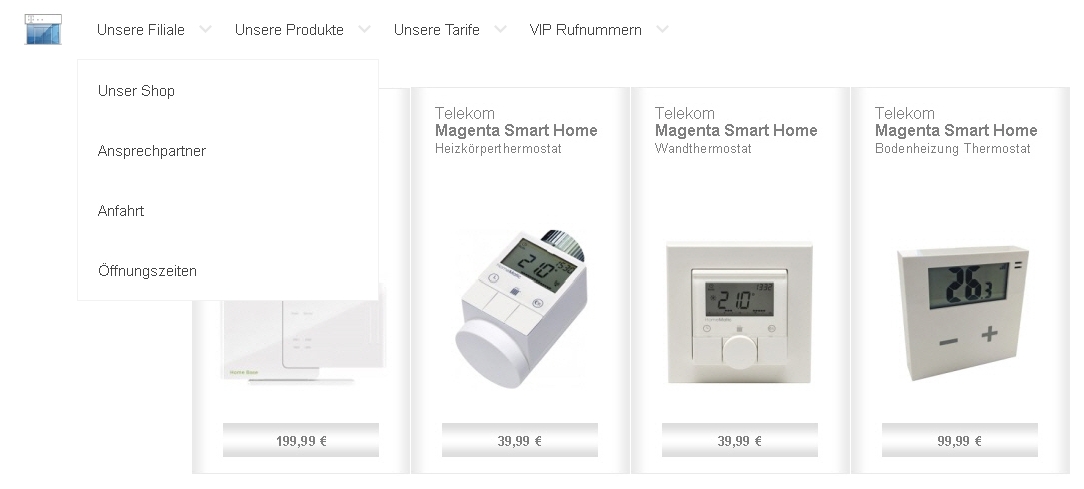 2. Die Navigationsleiste ist nur so breit, wie sie Buttons hat (Warengruppen), bei mir sind es 4 Warengruppen, also ca. halber Bildschirm. Ideal für die Darstellung währe hier natürlich komplett durchgehend von links nach rechts: weisser Bereich mit einer grauen Umrandung (wie bei den Popups "Unterwarengruppen") zur besseren Abgrenzung zu dem restlichen Content, den der Besucher nach unten durchscrollt.