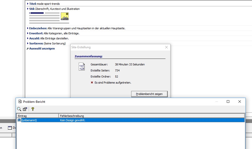 Fehlermeldung angezeigt: "Kein Design gewählt." (siehe Screenshot)