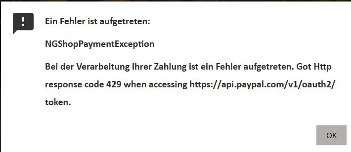 Seit dem Wochenende bekomme ich von Kunden Reklamationen das die Bestellung nicht mehr per Paypal abgewickelt werden kann. Bei einem Testkauf bekam ich die gleiche Fehlermeldung wie vom Kunden beschrieben. Die Fehlermeldung hier im Anhang. Wir haben am Shop nichts verändert. Hat jemand eine Idee oder kann mir sagen was es mit der Fehlermeldung auf sich hat?