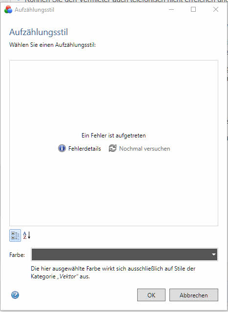 Das Problem äußert sich darin, das ich keine Auswahlmöglichkeiten habe, stattdessen zeigt das Auswahlfenster mir immer gleich eine Fehlermeldung an wie die folgende: