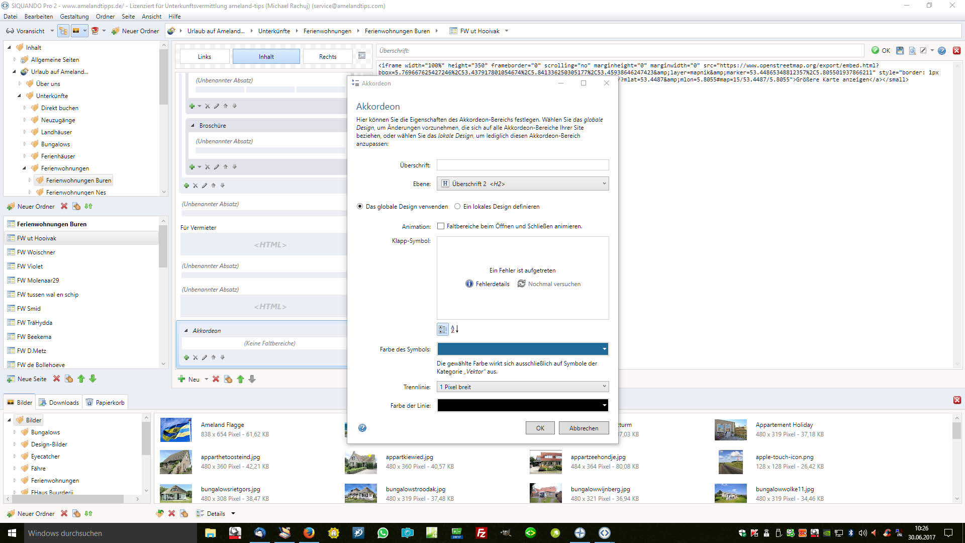 Wie gesagt die entsprechenden Dateien liegen im richtigen Ordner auf dem Server - aber weder Aufzählung noch Akkordeon lassen sich bearbeiten.