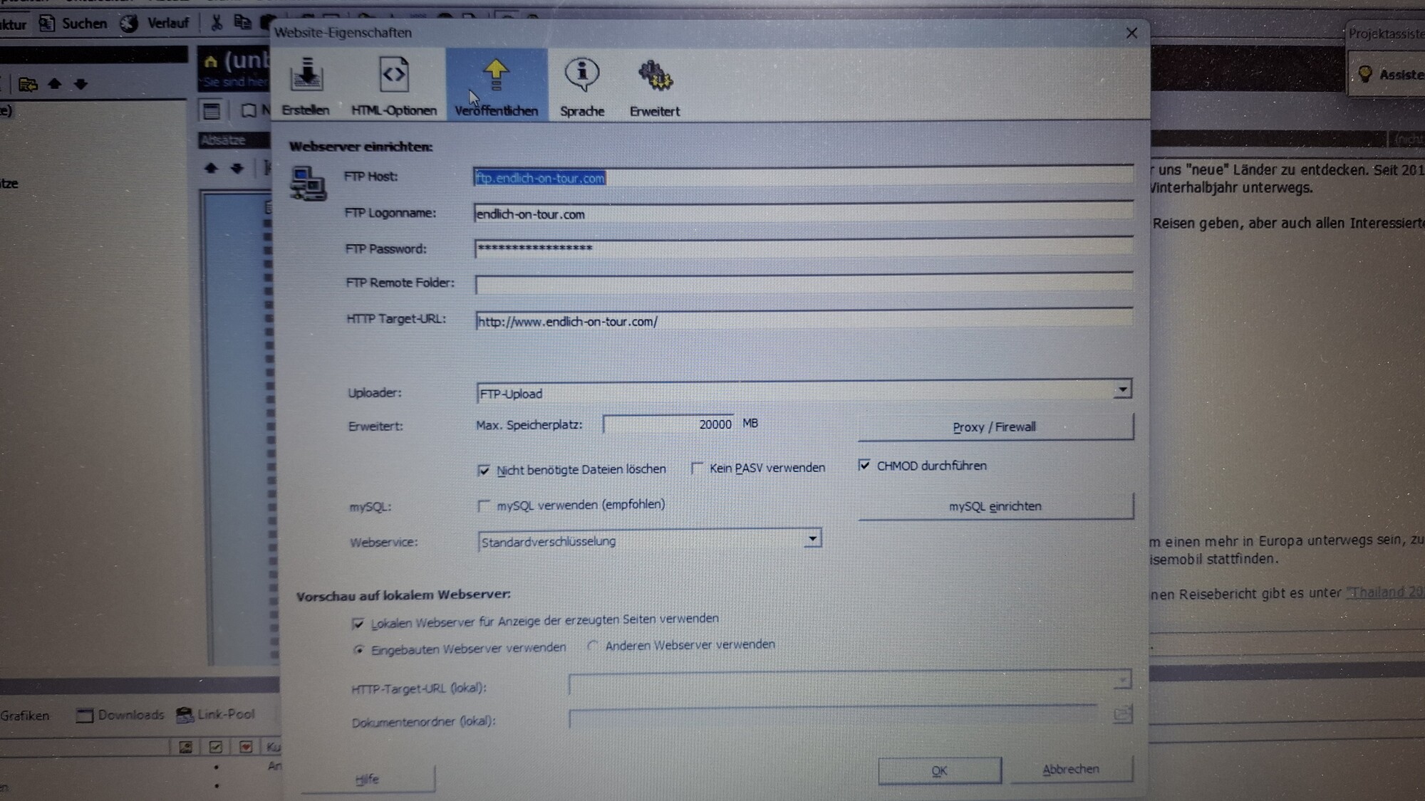 Ich habe an den Zugangsdaten nichts geändert, auch der Speicherplatz für die erzeugte Website auf meinem PC ist unverändert. Leider kenne ich mich mit dem Server bzw. dem Zugang nicht wirklich aus, auch weiß ich nicht was ggf. geändert werden sollte.